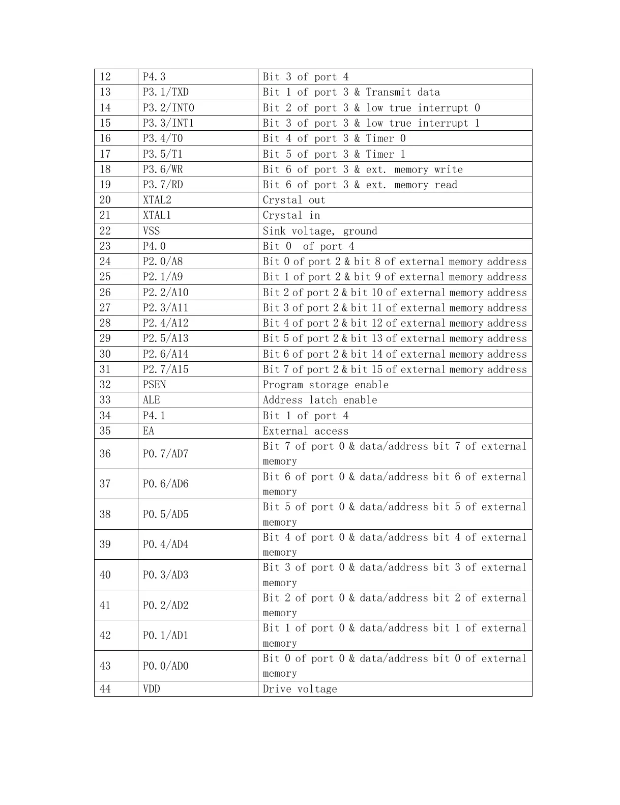 28 P2.4/A12 Bit 4 of port 2 & bit 12 of external memory address