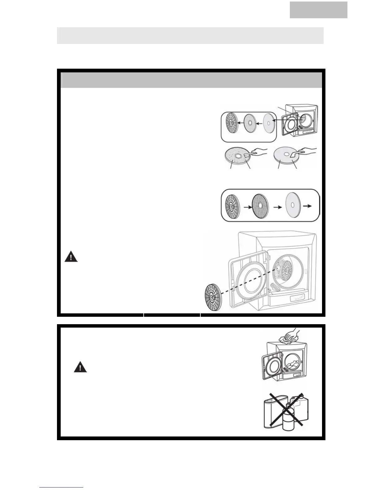 Desconecte el cable de suministro eléctrico cuando limpie la secadora.