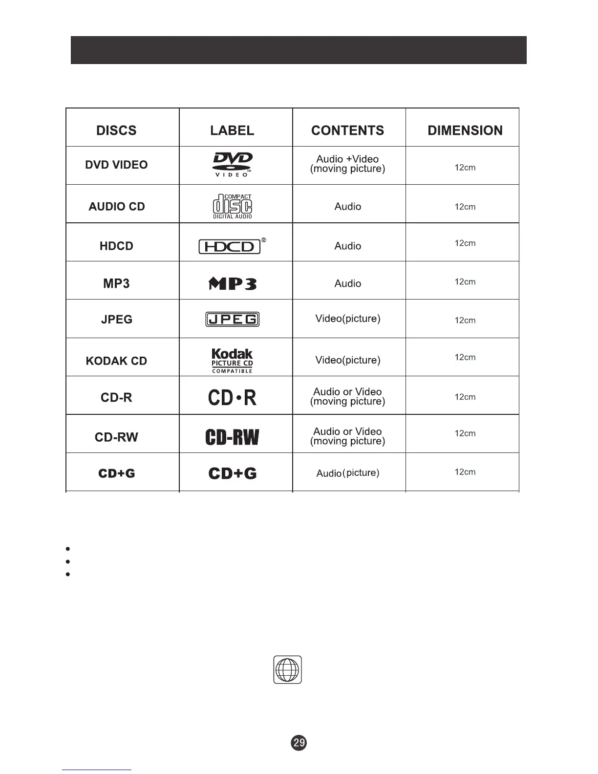 The following discs can be played: