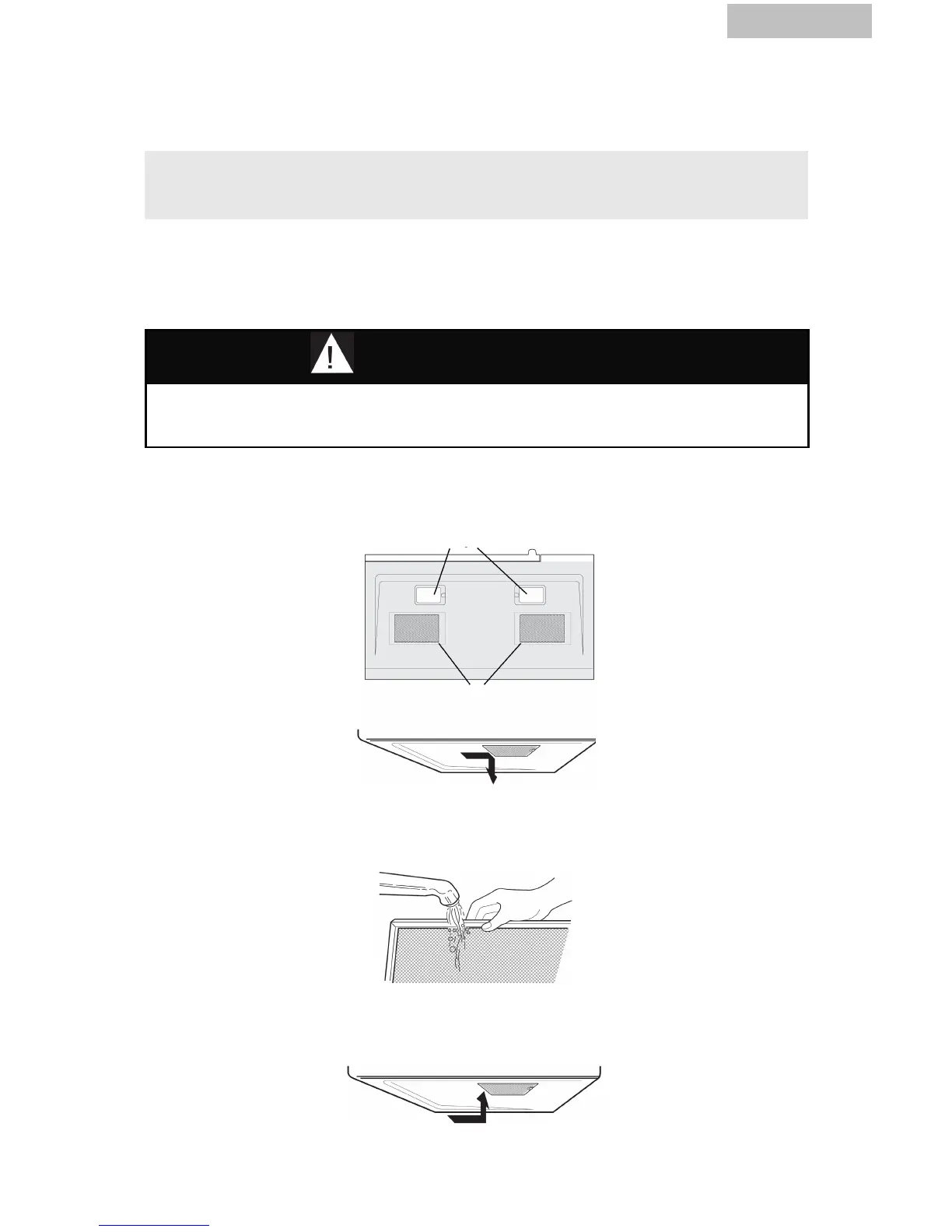 funcionar el extractor del horno sin colocar los filtros correctamente en su lugar.