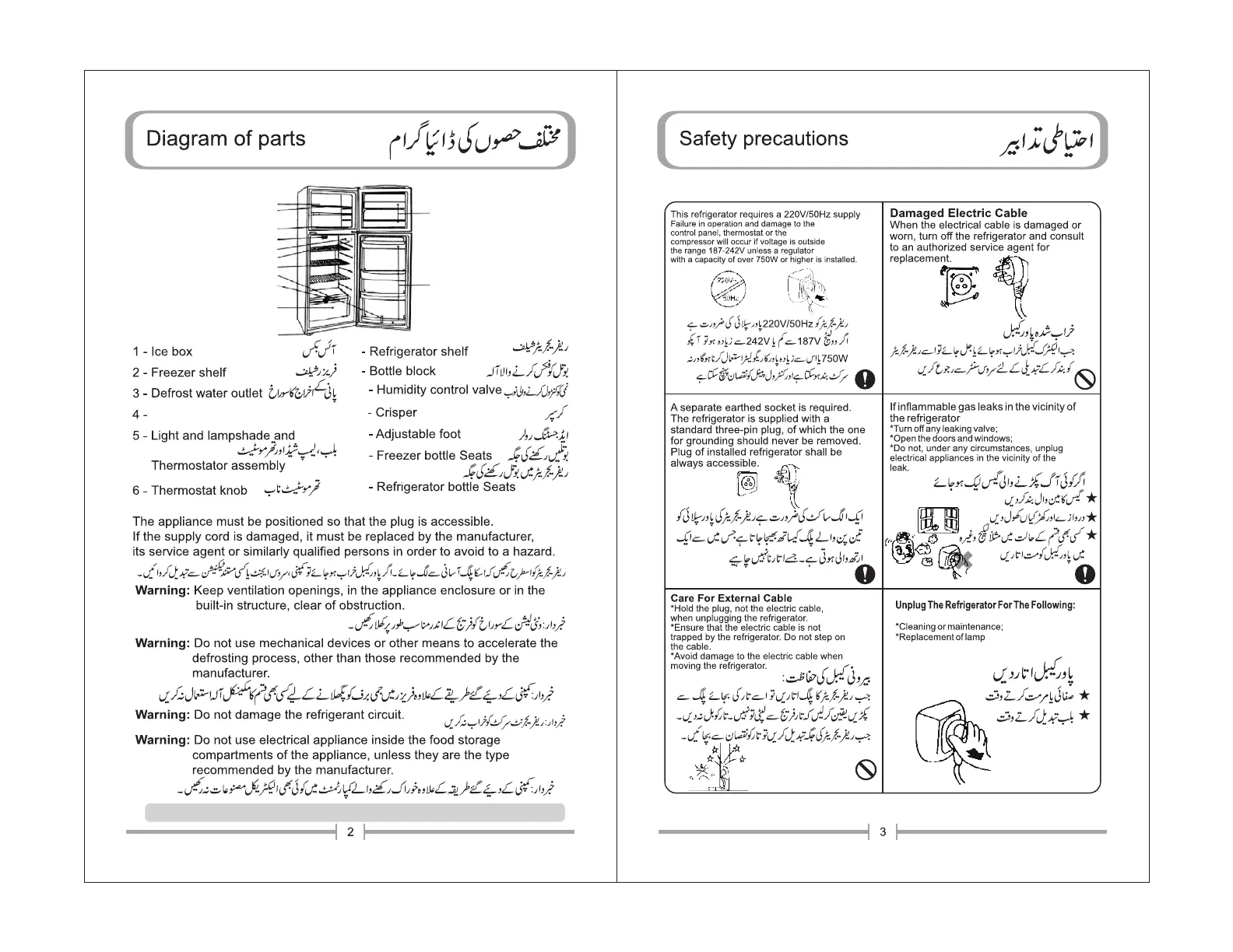 Haier HRF 216 - Refrigerator Diagram and Safety Precautions; Diagram of Refrigerator Parts; Essential Safety Precautions