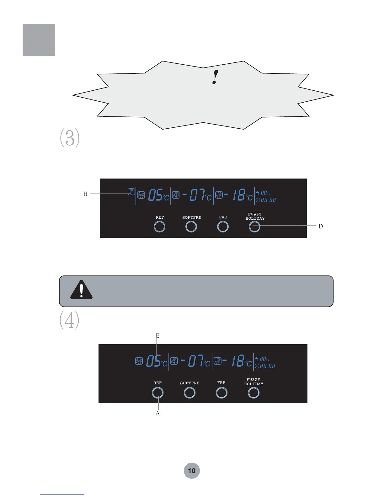 Caution: In fuzzy mode, temperature of the refrigerator and freezer cannot