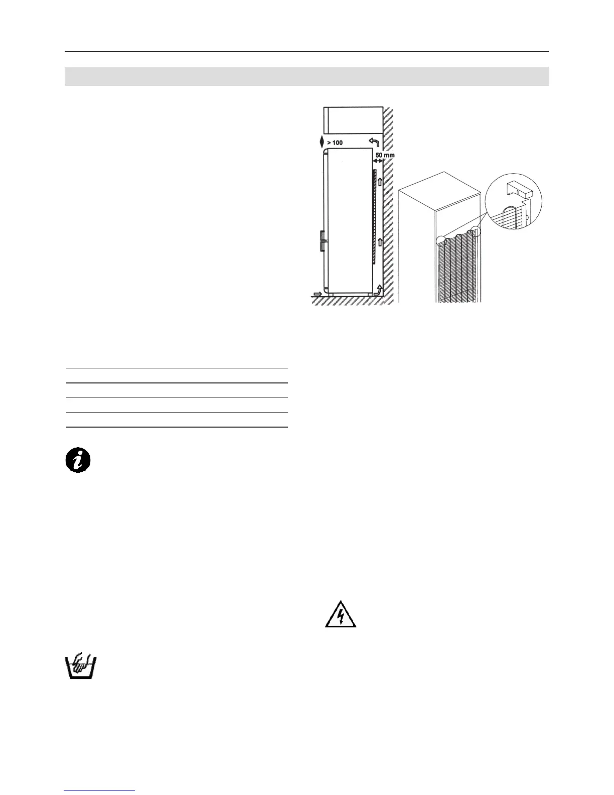 (almeno 100 mm) e posteriore (almeno 50 mm) dalla pare-