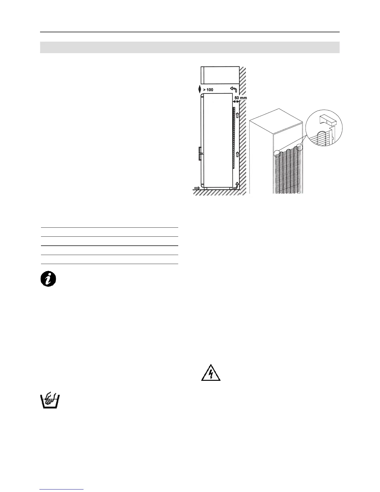 mm) e traseira (pelo menos 50 mm) da parede, caso con-