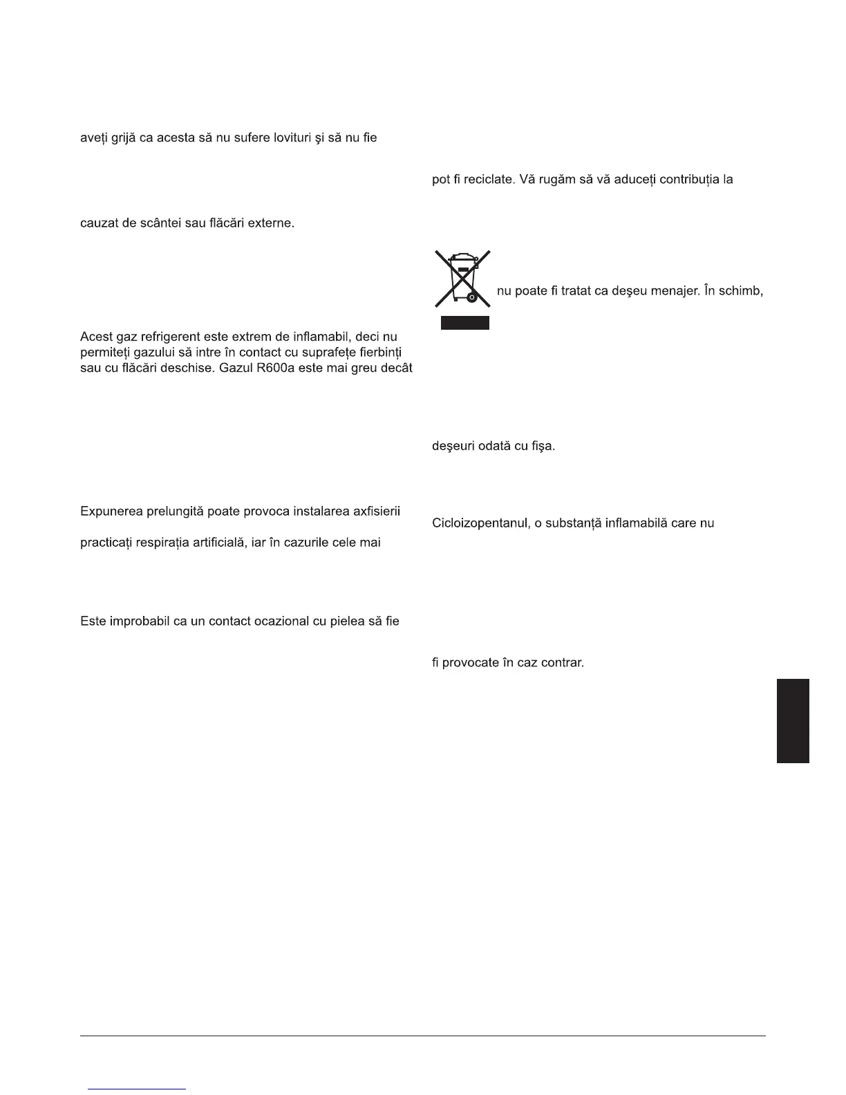 refrigerent IZOBUTAN (R600a). La deplasarea aparatului,