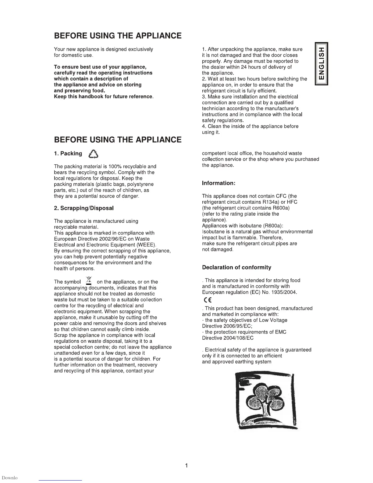 Haier HRFZ-307AA - Before Using The Appliance; Packing and Disposal; Appliance Information and Compliance
