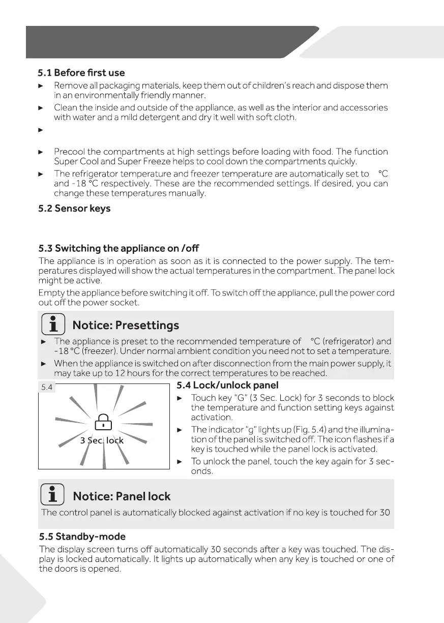 After the appliance has been levelled and cleaned, wait for at least 2 hours before con-