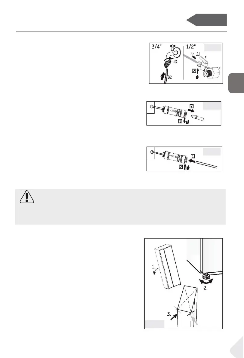 5. Csatlakoztassa a cső (B2) végét a „D” vagy „E” és „F”
