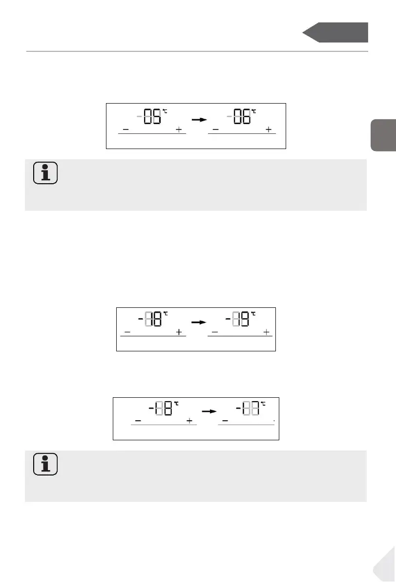 én gang, innstilt temperatur på fryseren økes med 1. Frysetemperaturen vises i sekvensen