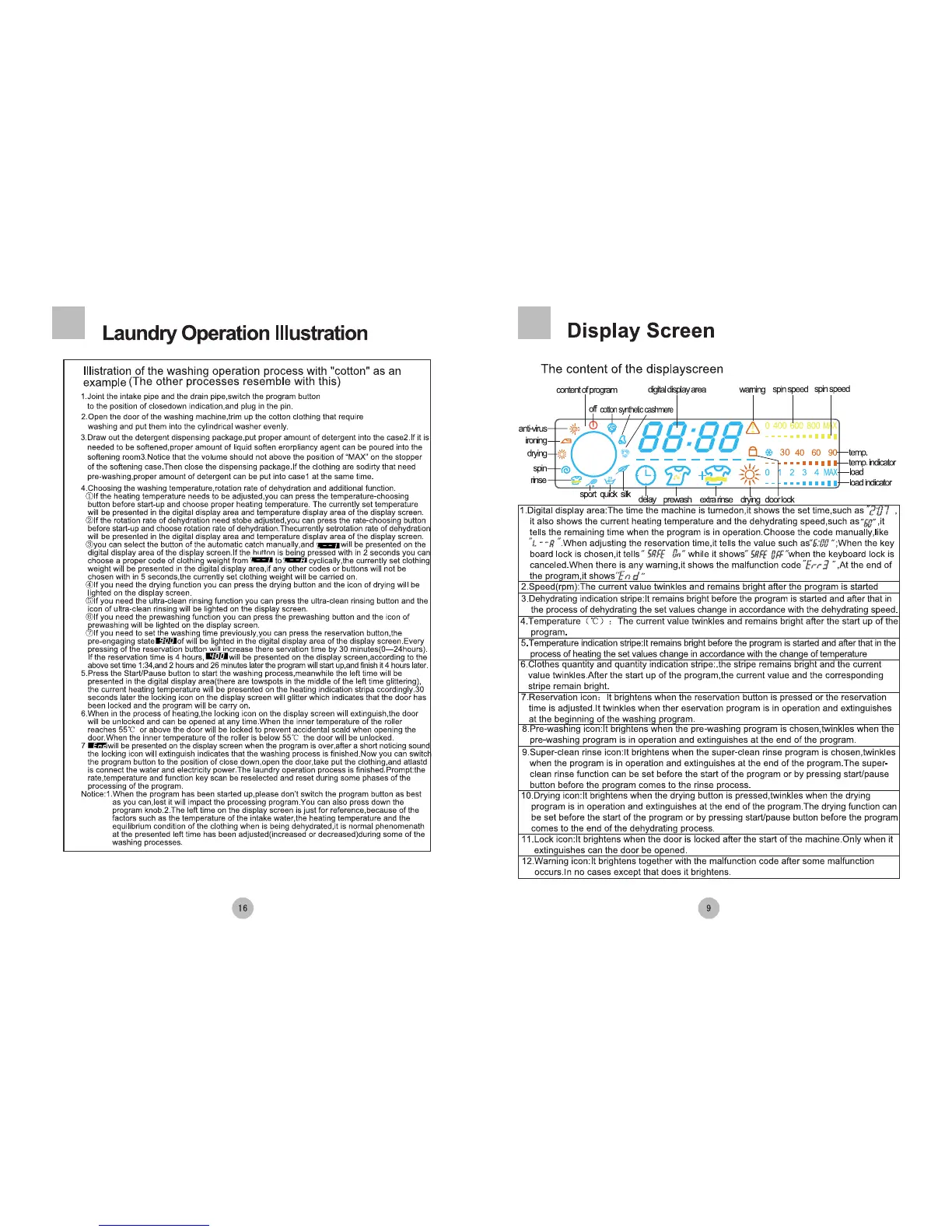 Haier HTD1268 - Laundry Operation Guide; Step-by-Step Washing Process; Display Screen Information; Screen Element Explanations