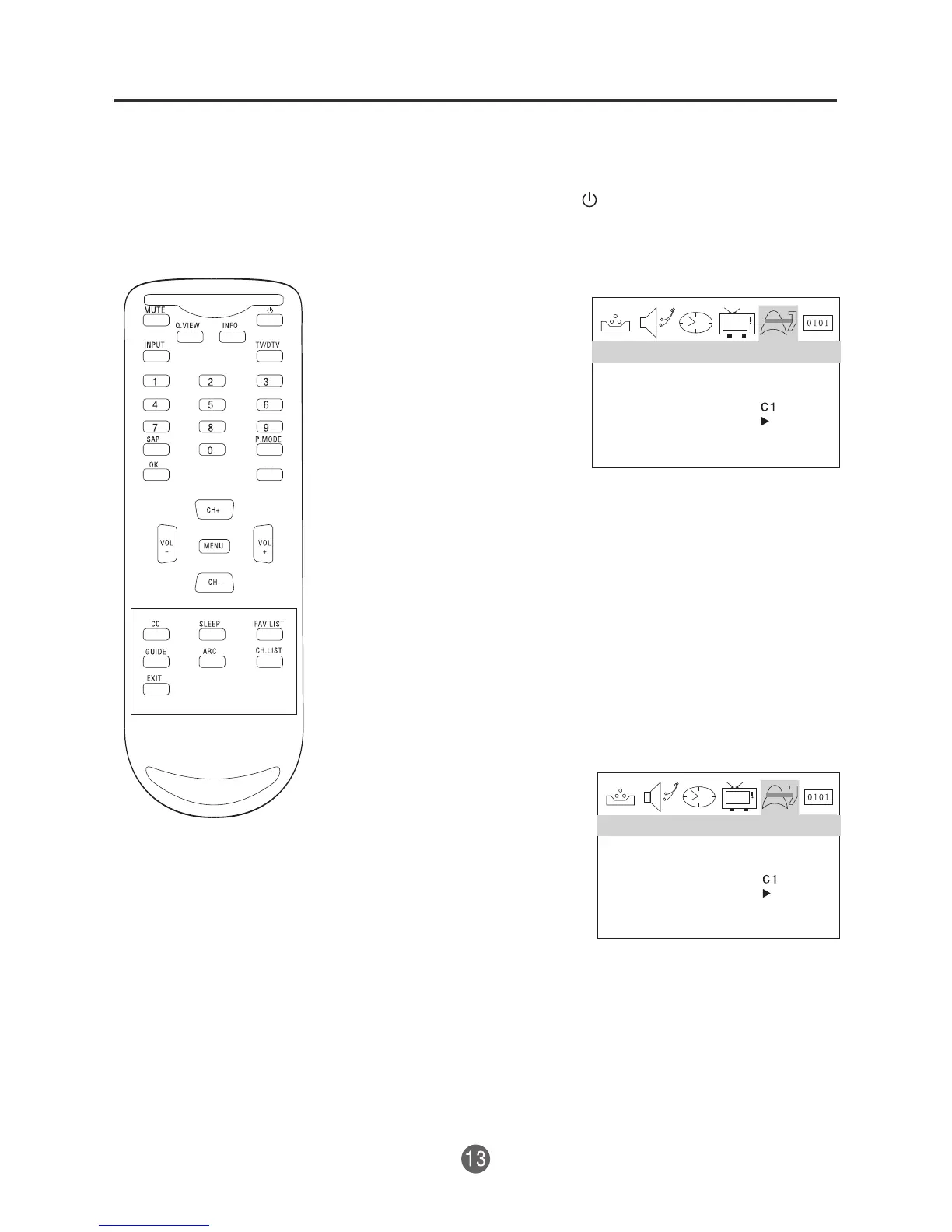 2 Presione el botón CH+/- para seleccionar la opción