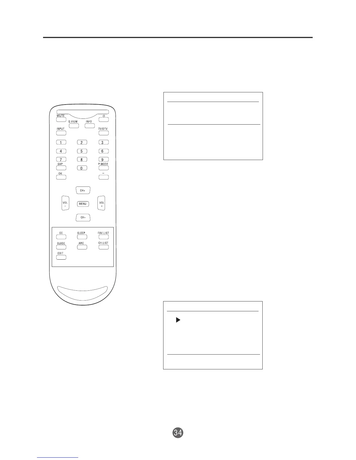 2. Presione el botón CH+/- o VOL+/-para seleccionar el