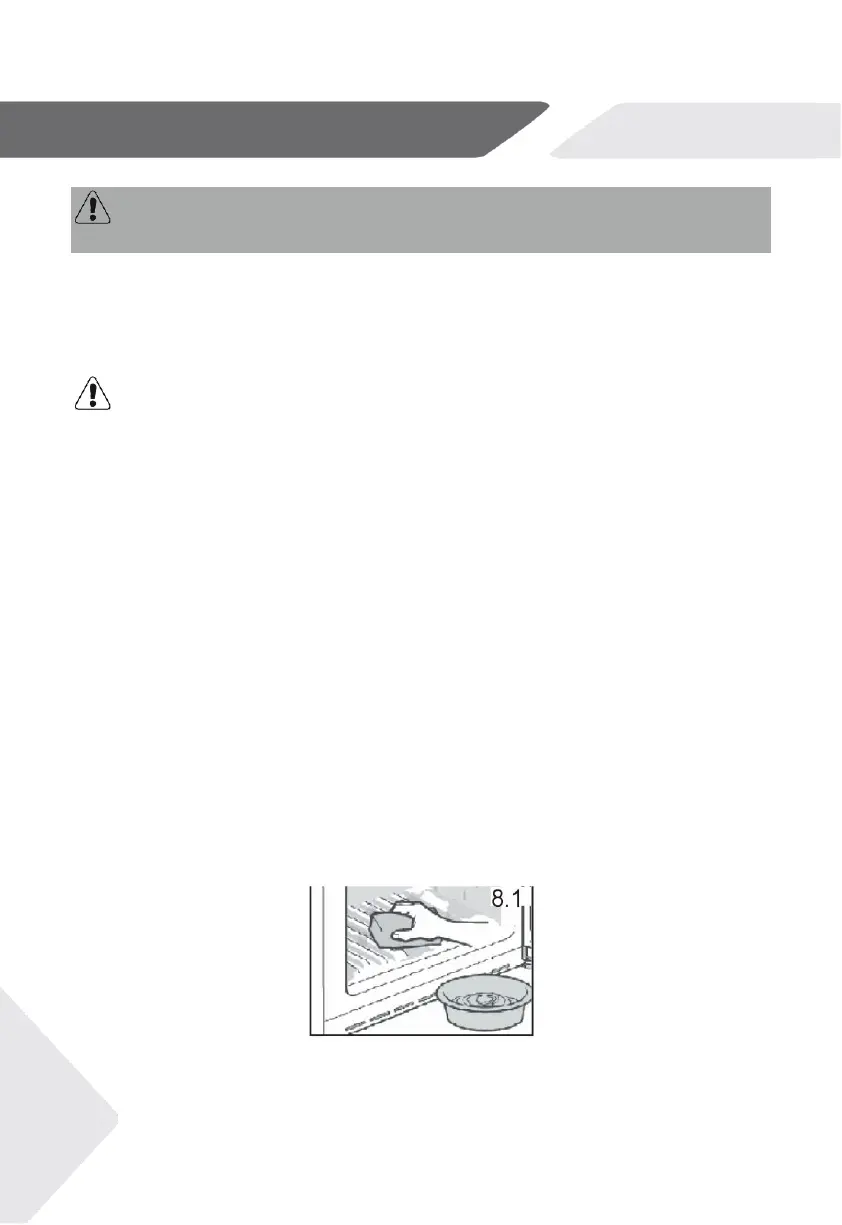 • Clean the inside and housing of the appliance with a sponge dampened in