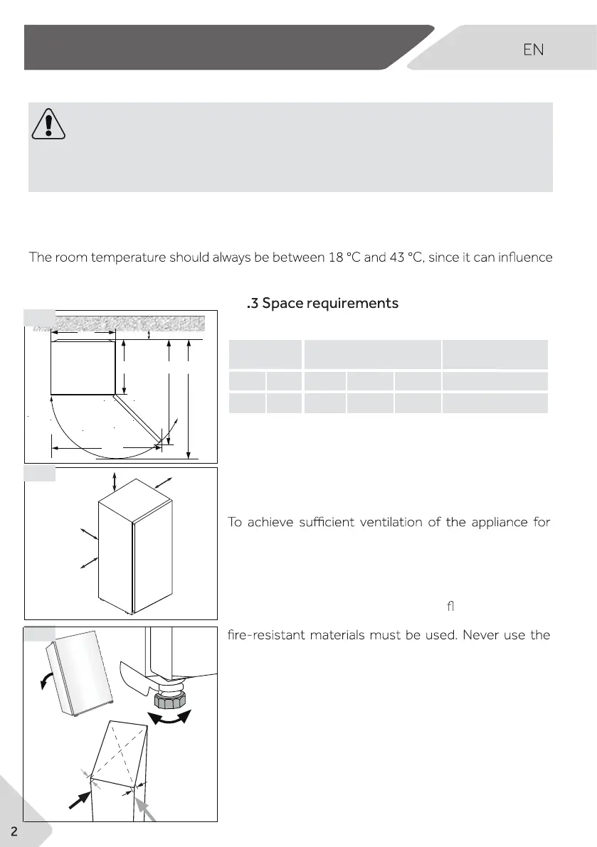 the temperature inside the appliance and its energy consumption. Do not install the appli-