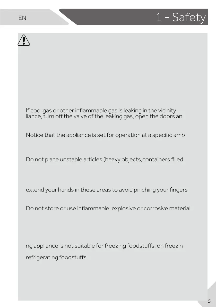 Open and close the doors only with the handles. The gap between the