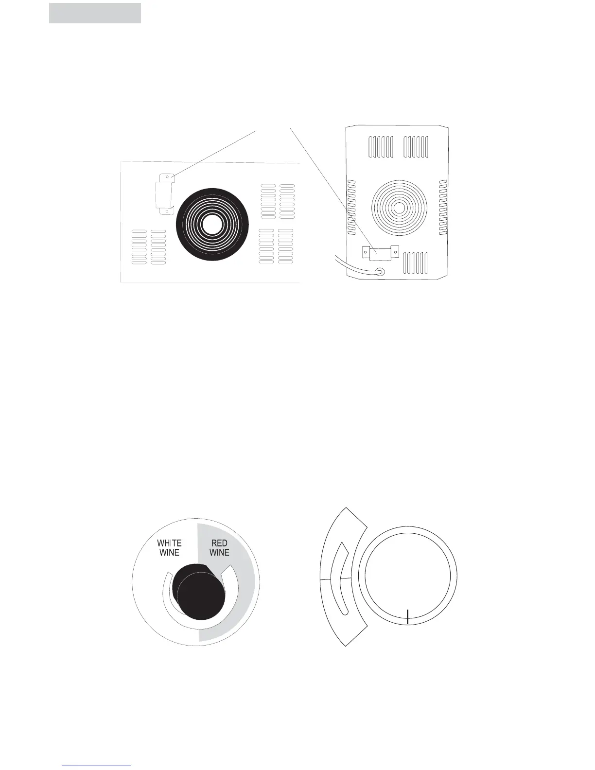 • Your wine cellar has a temperature control knob on the back of the unit. There are
