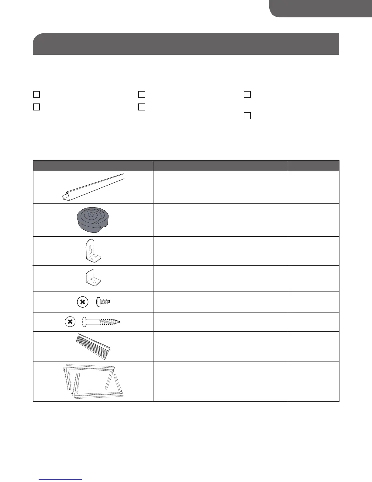 Revise que el paquete incluya todas las partes mencionadas para su aire acondicionado específico.