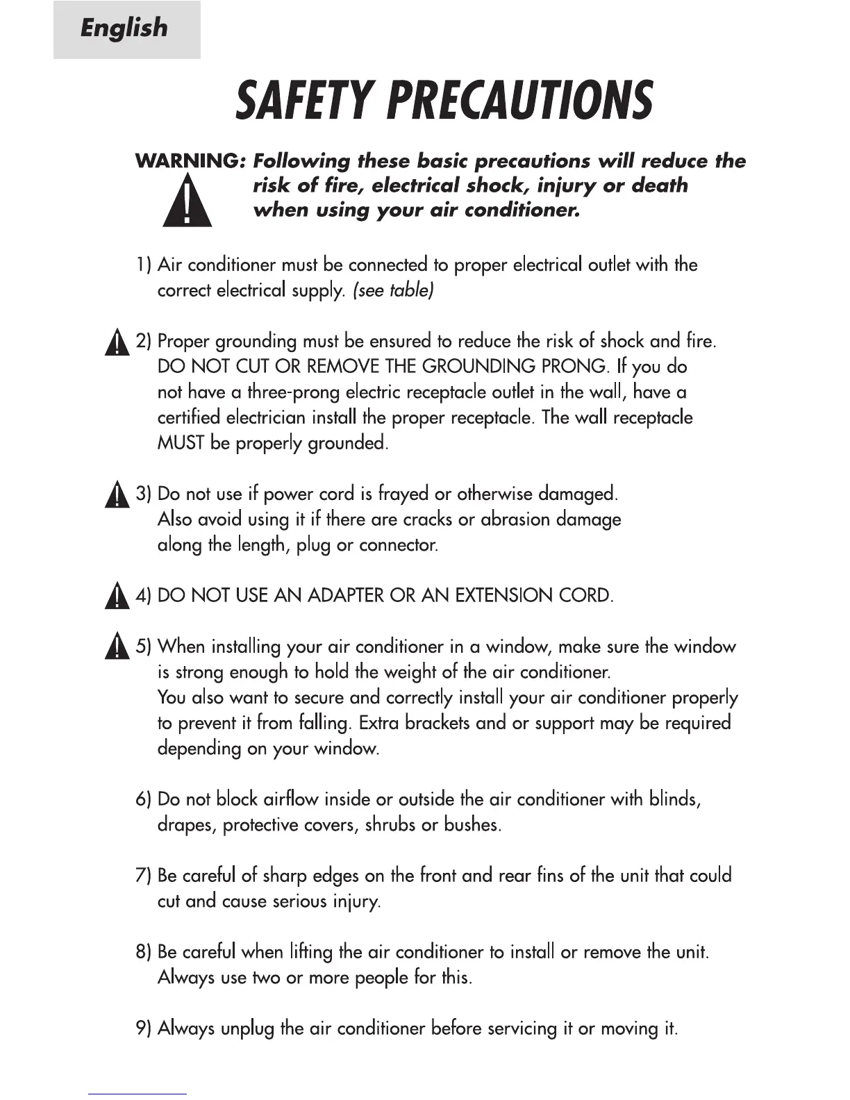 Haier HWR05XC7 - SAFETY PRECAUTIONS