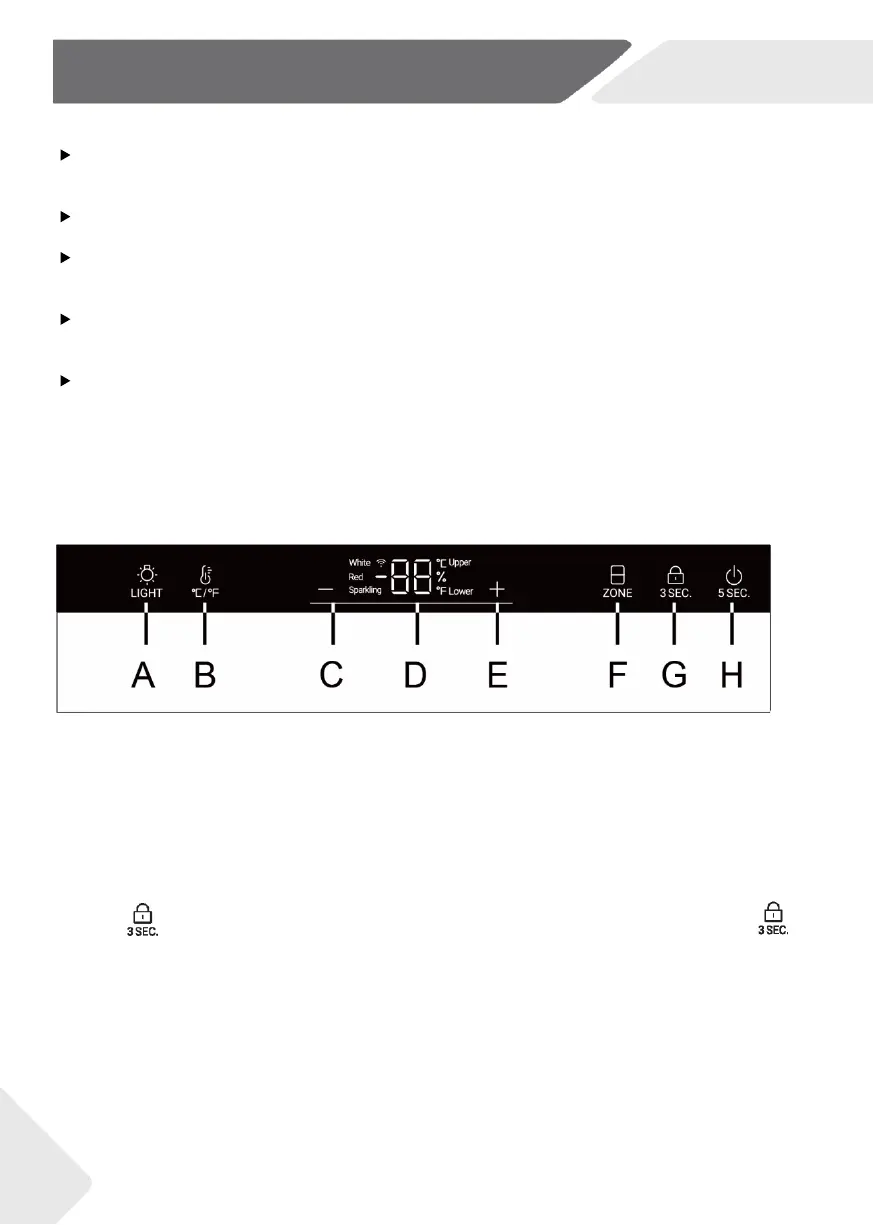 Mantenga pulsado el botón H durante 5 segundos: la bodega corta la energía.