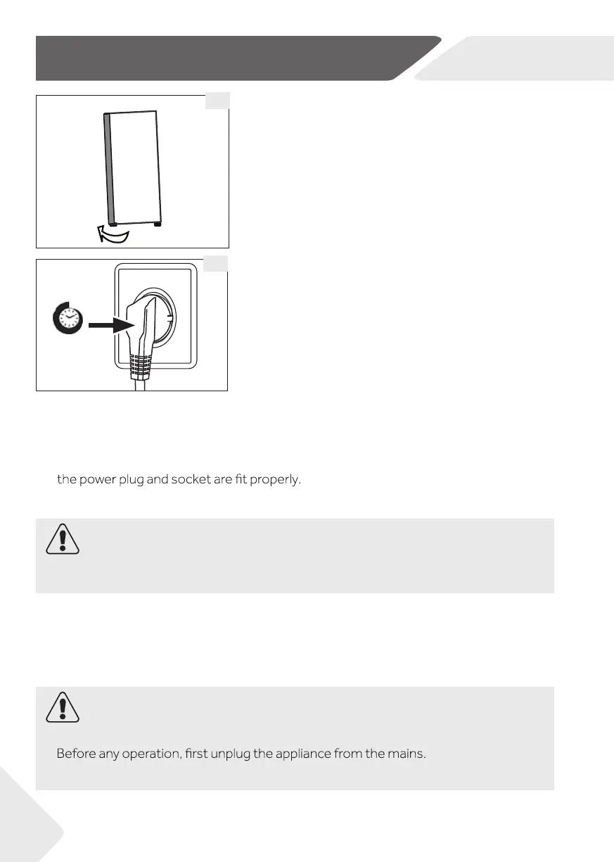▶ power supply, socket and fusing are appropriate to the rating plate.