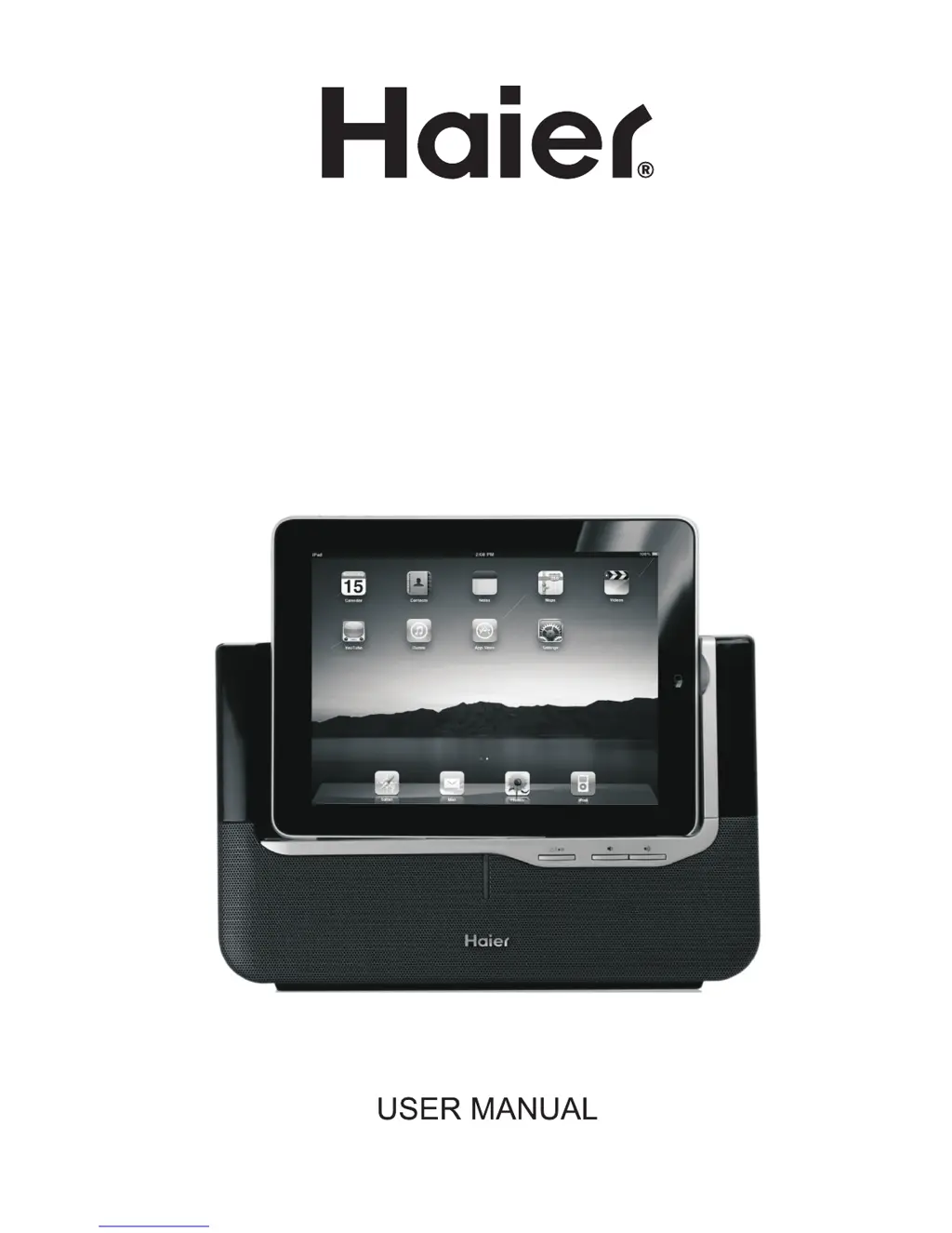 If your Haier Docking Speakers aren't turning on, ensure the AC adapter is properly plugged into both a working wall outlet and the DC IN jack on the back of the unit.