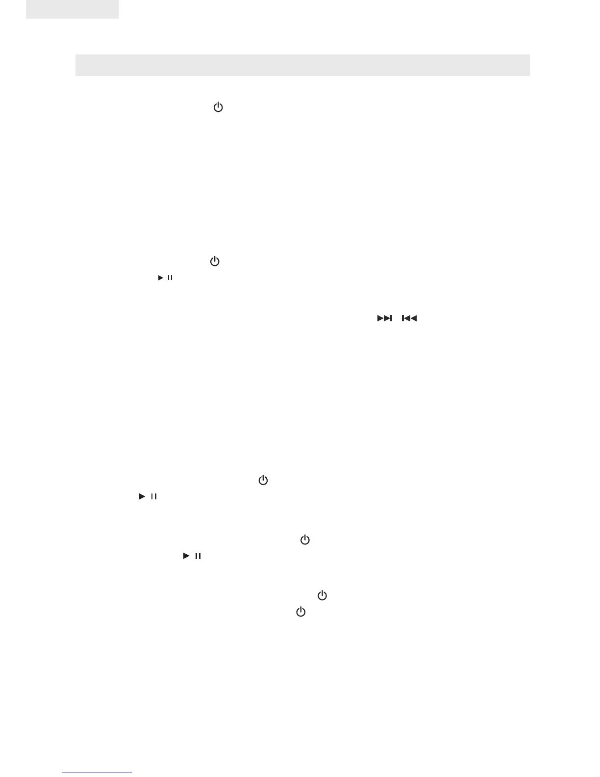 6.) To stop iPod playback press and hold the POWER ON/OFF/PLAY/PAUSE button on
