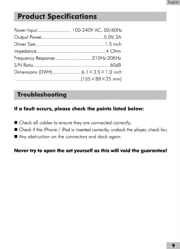 Haier IPDS-1 - Product Specifications; Troubleshooting