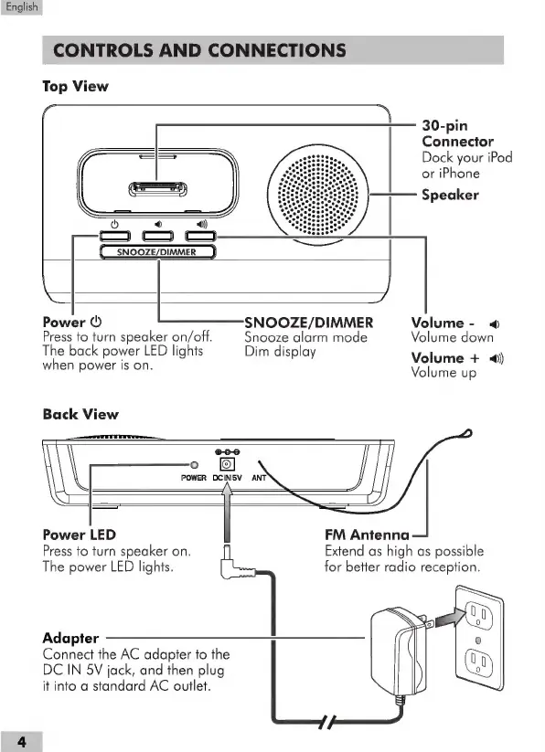 Haier IPDS-1 - Controls and Connections; Top View Controls; Back View Connections