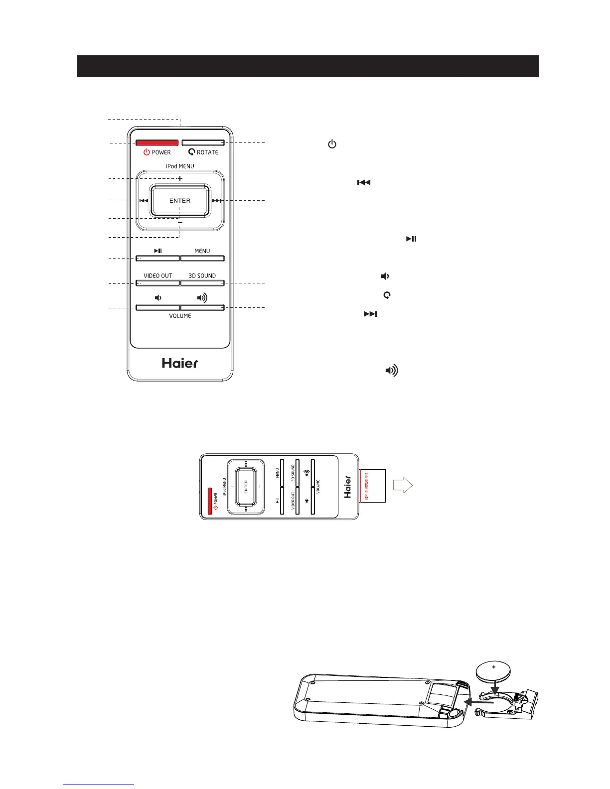 battery in the holder as shown in the illustration. Slide the holder back into the remote