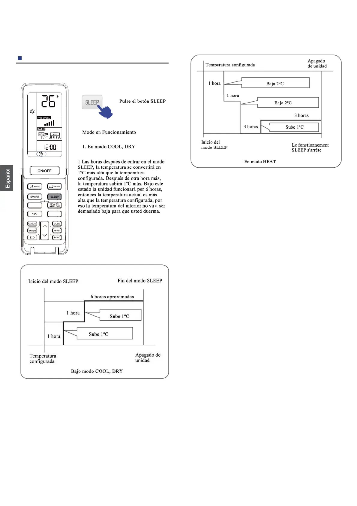 1 hora después de entrar en el modo SLEEP, la temperatura bajará 2ºC