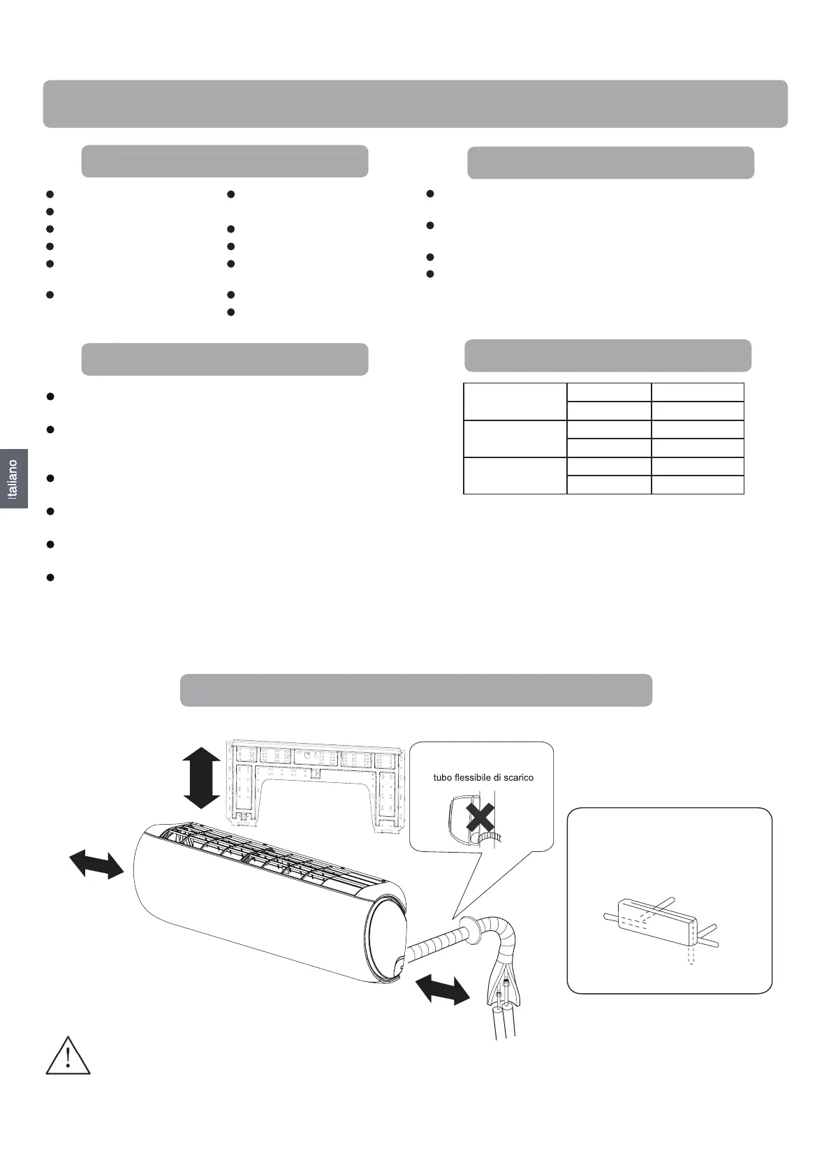Schema per l'installazione dell'unità interna ed esterna