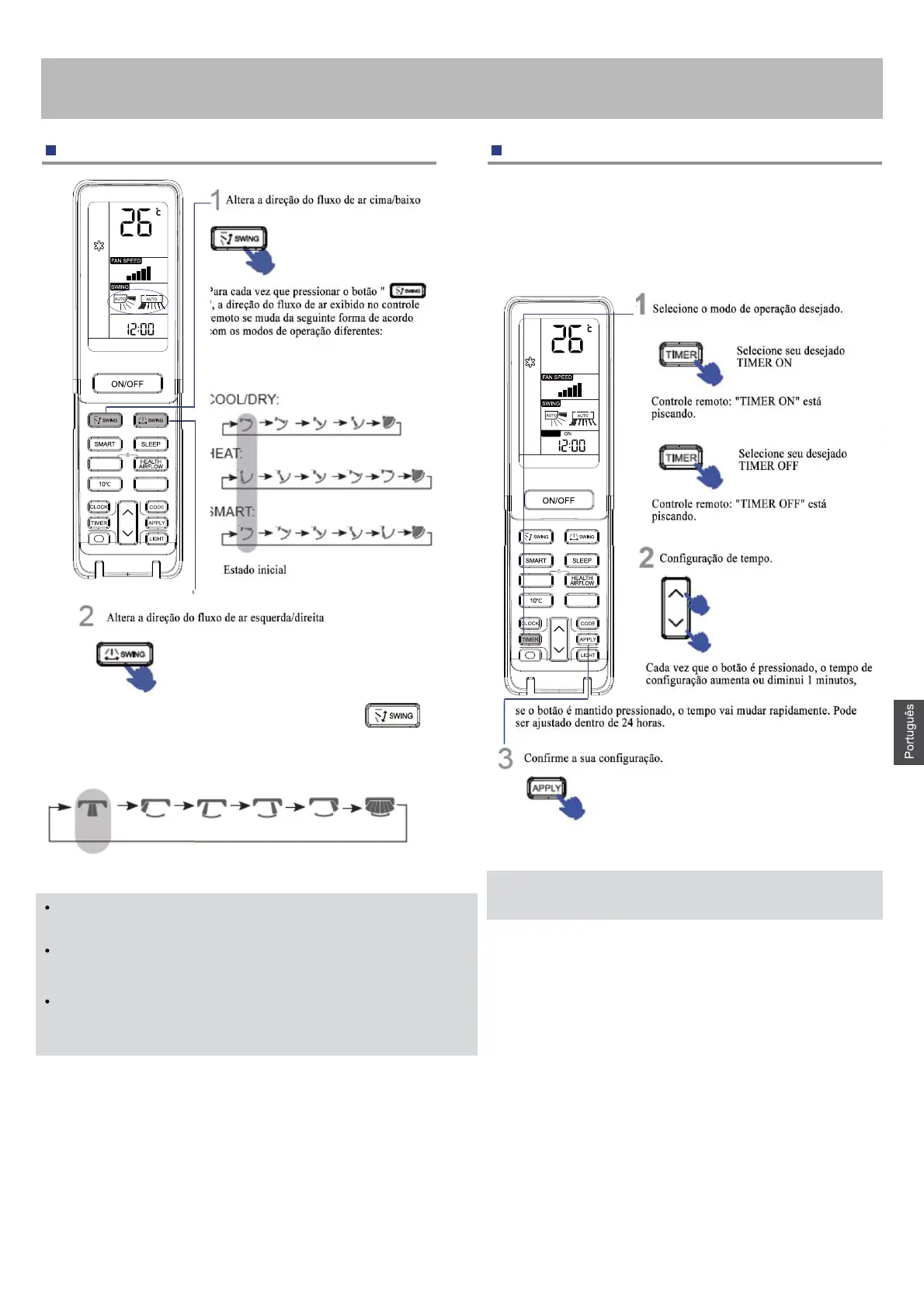 saída de ar, se todas são ajustadas à esquerda ou à direita.