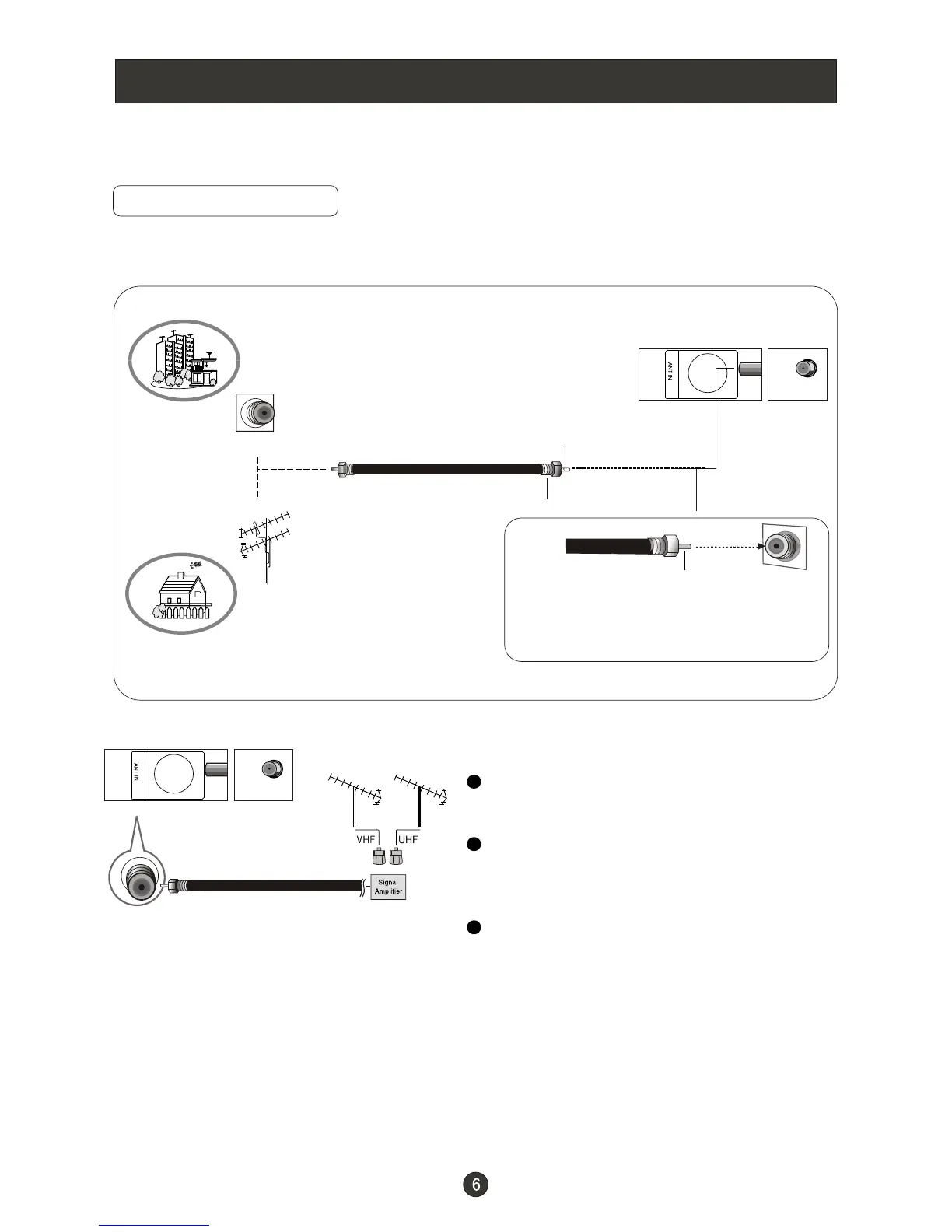 -antena o servicio de cable con conexiones de caja de cable.