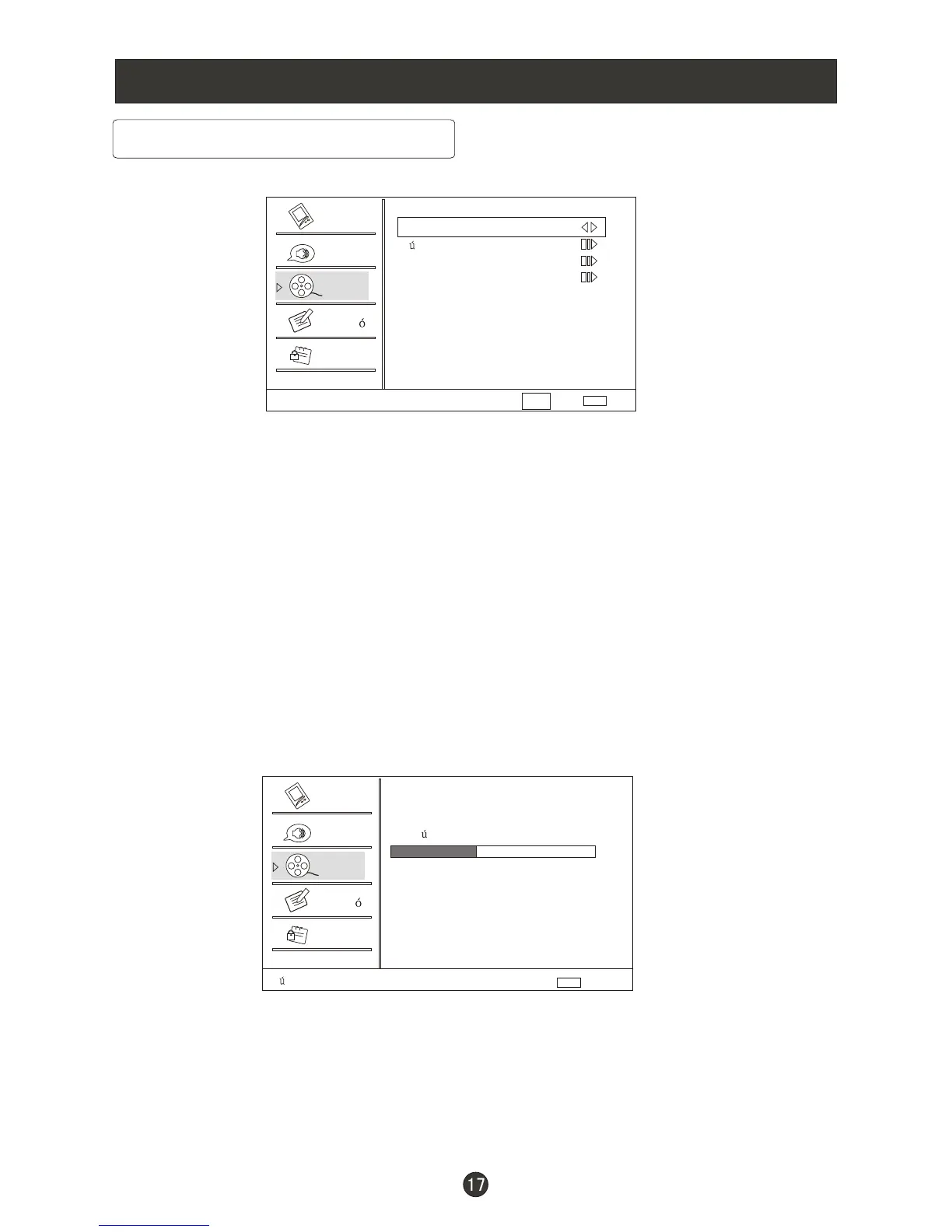 1.Pulse el botón MENU y CH+/ CH- hasta que el menú siguiente aparezca en la