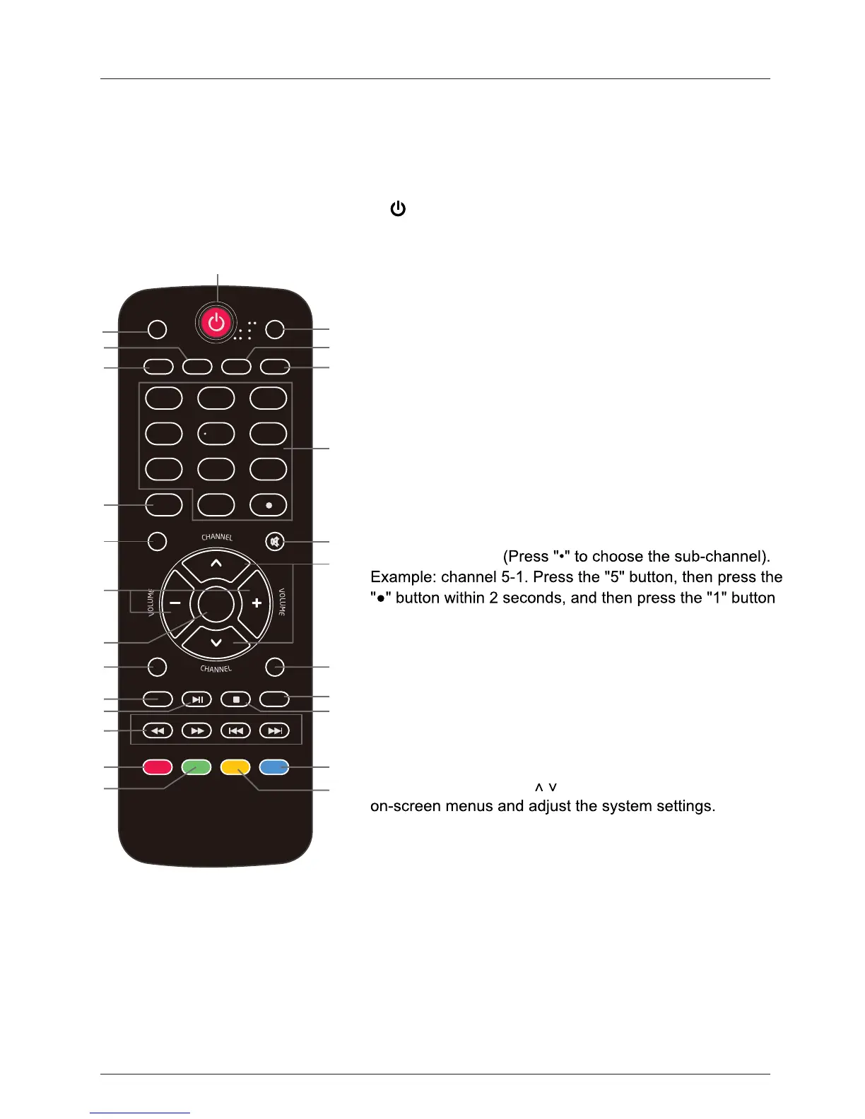 25. FAVORITE : Press to show the Favorite Channel List. Use the up and down arrow keys to