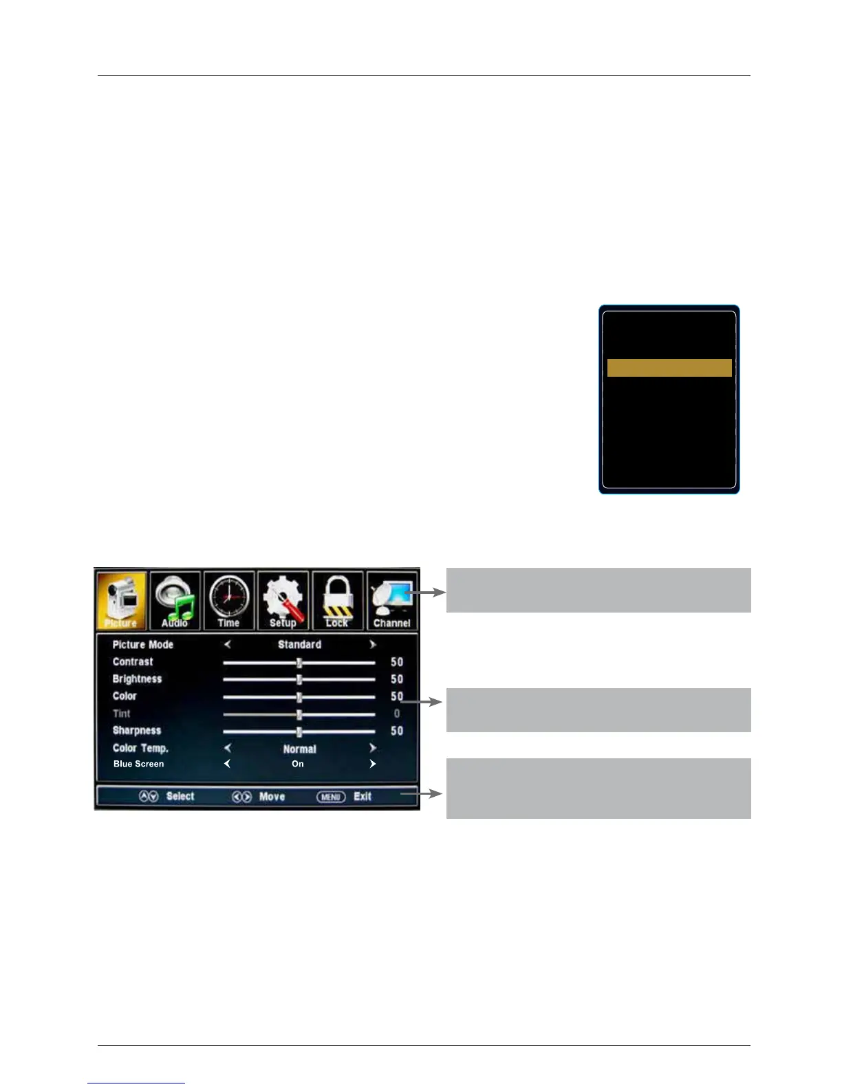 Picture, Audio, Time, Setup, Lock, Channel