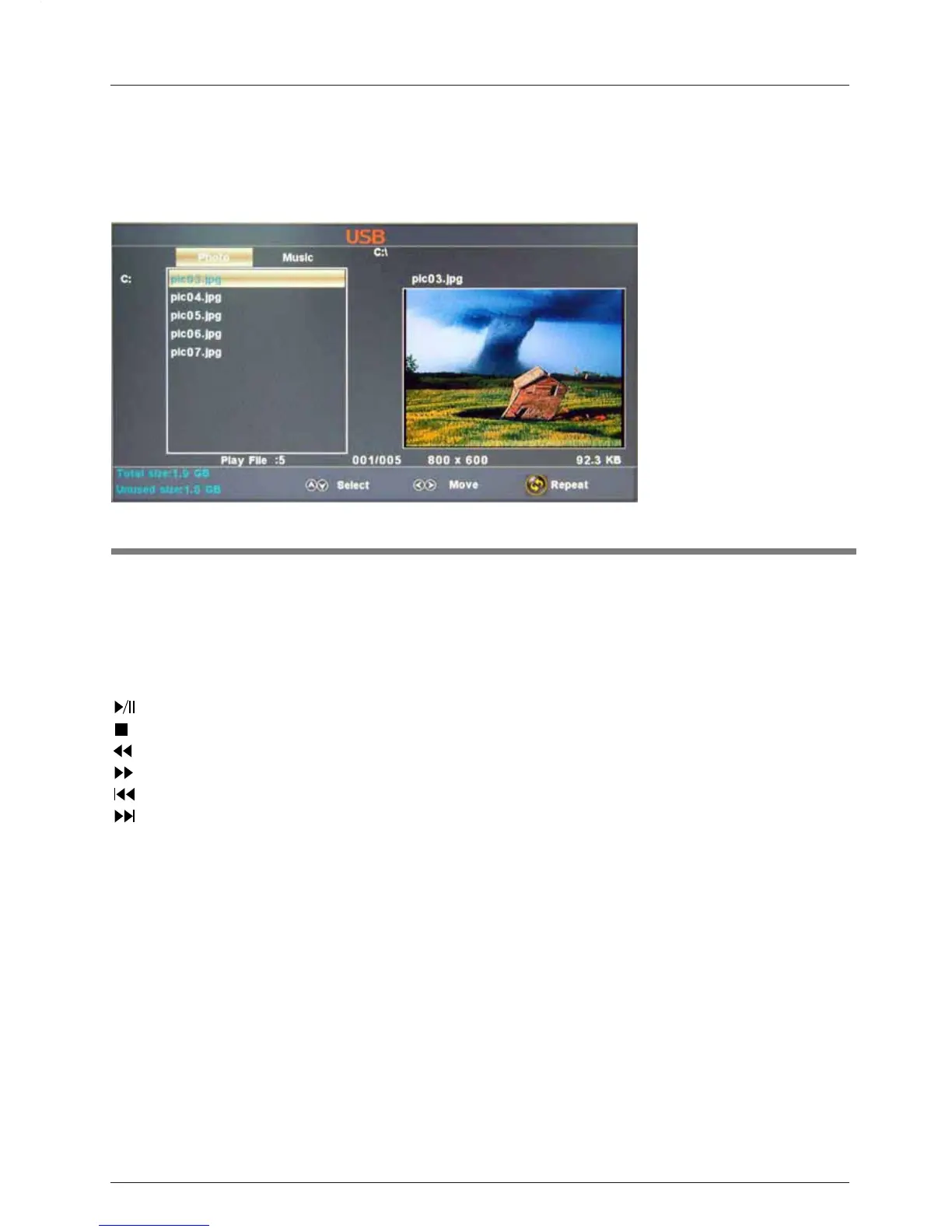 Note: You could enter the USB menu by selecting the USB source in the input source menu.