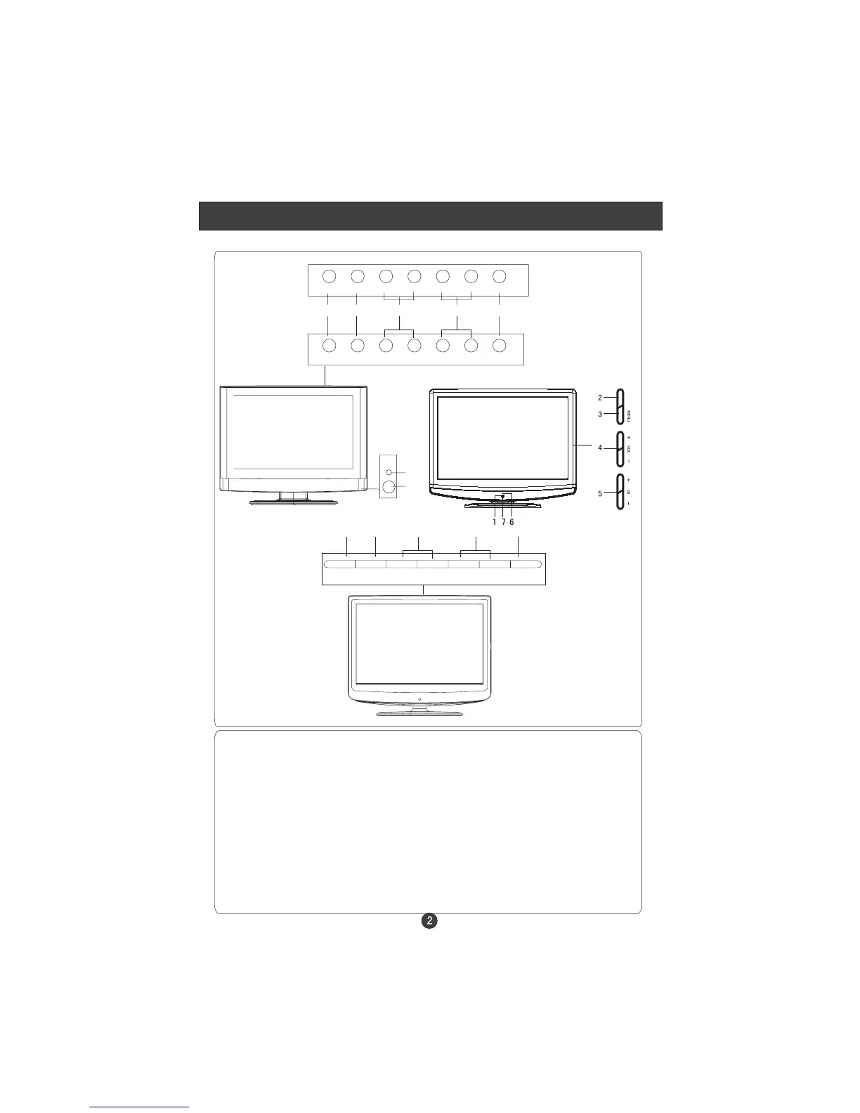 5. CH- TV channel down / to select the item in the menu