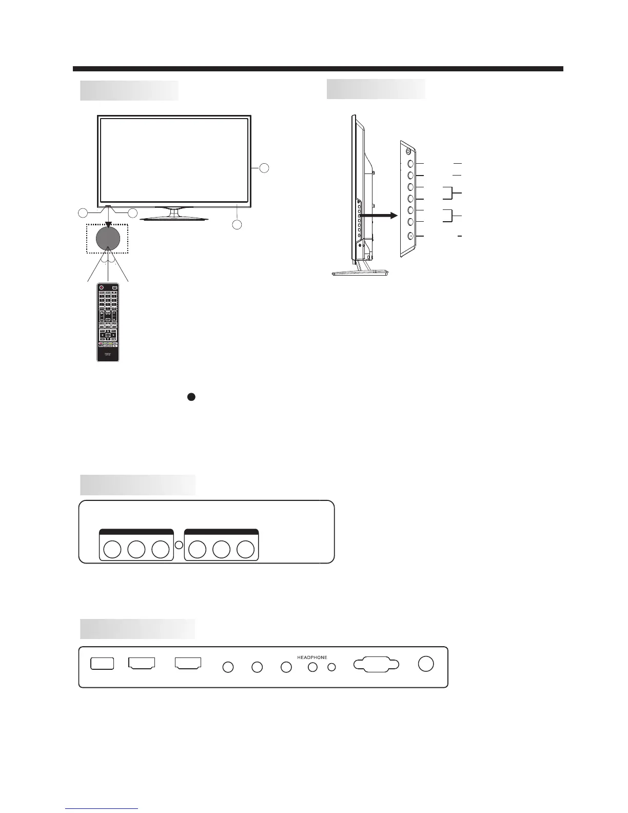 USB, HDMI2, HDMI1, YPbPr INPUT, HEADPHONE, PC AUDIO, VGA, RF.