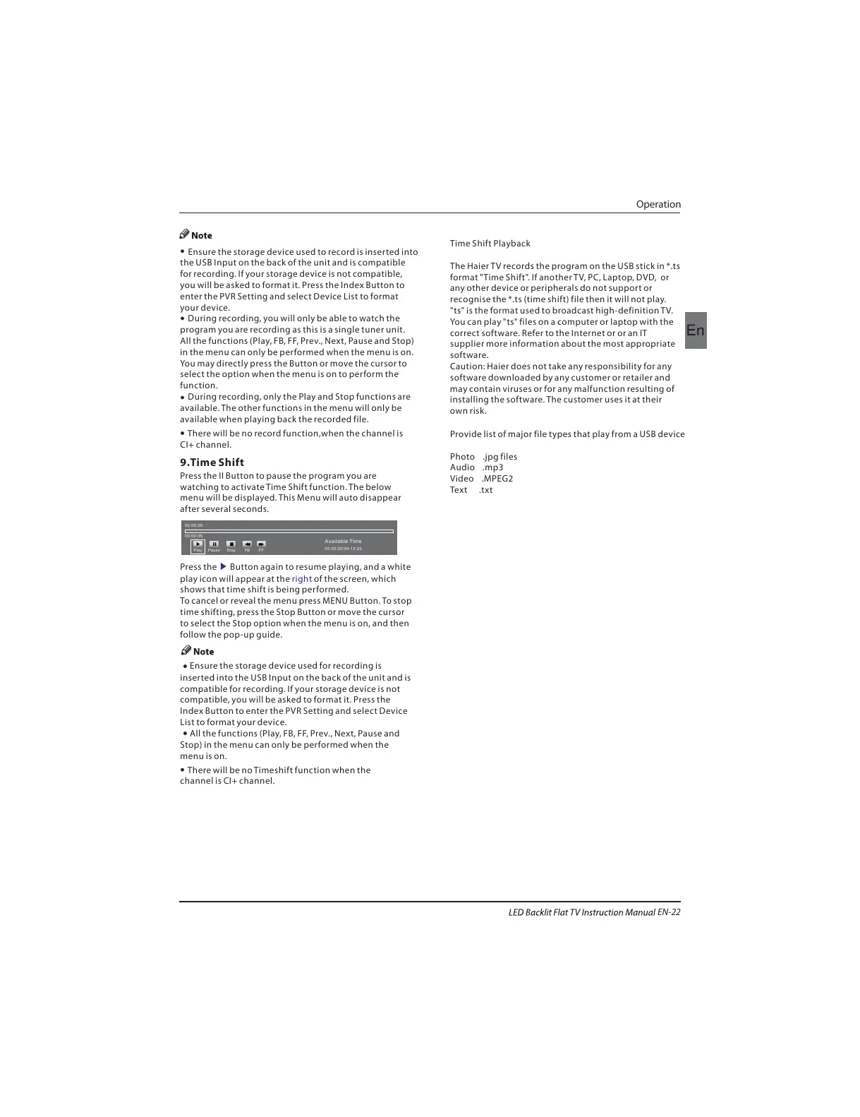 format "Time Shift". If another TV, PC, Laptop, DVD, or