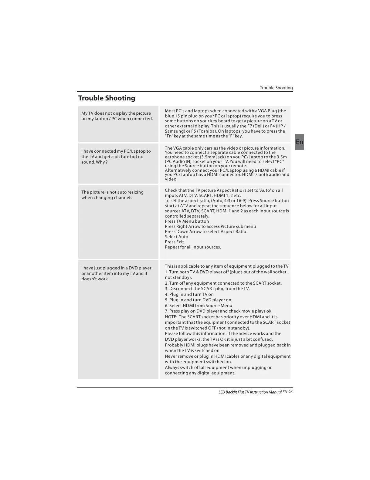 1. Turn both TV & DVD player off (plugs out of the wall socket,