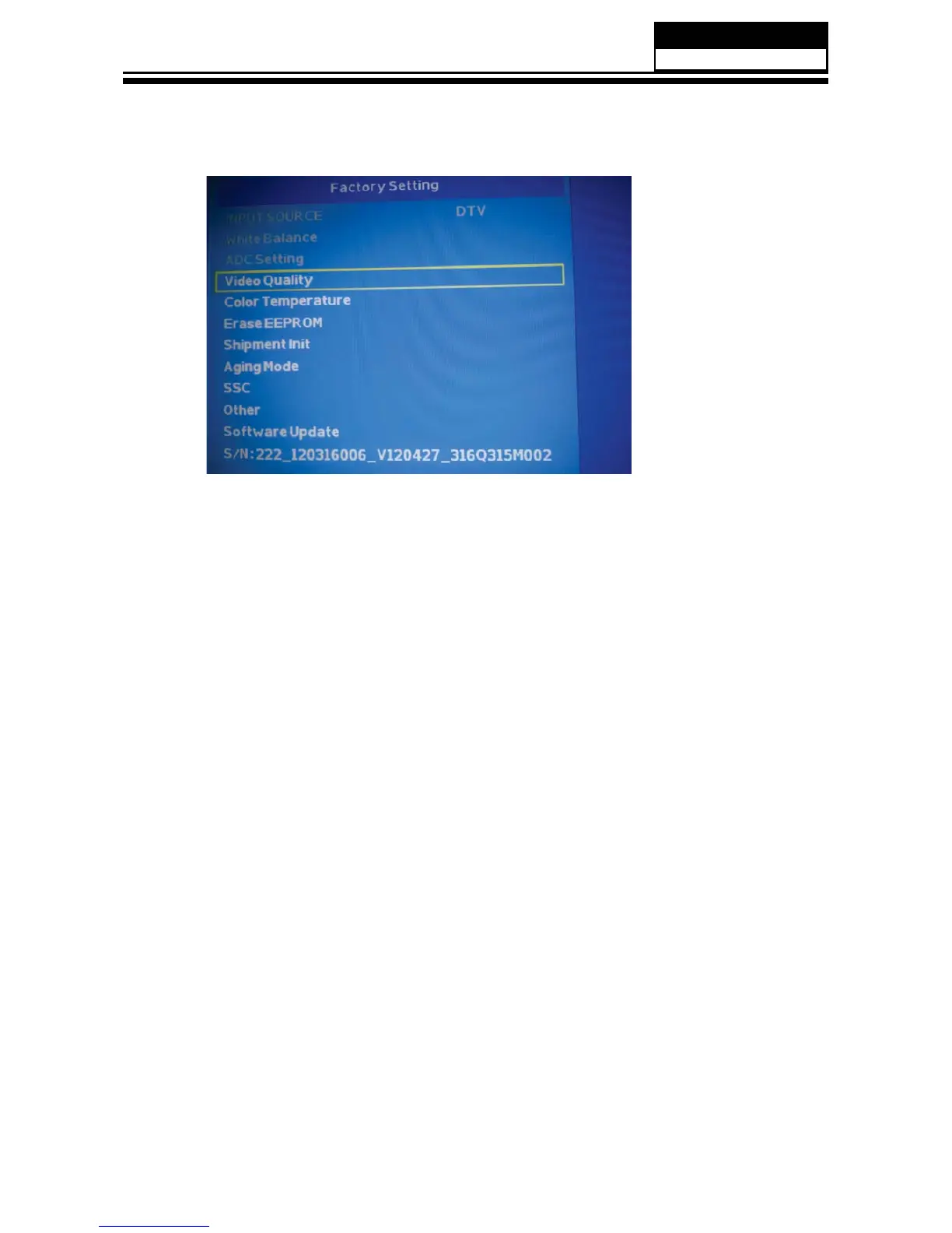 1: ADC setup: set ADC value of YUV,VGA. It can also be auto-set. Adopt 100%