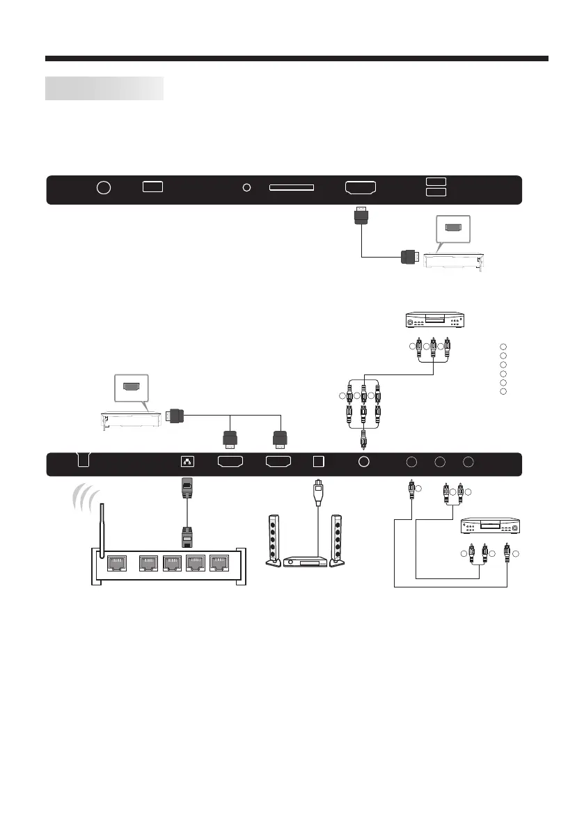 This TV provides one group of AV, one group of YPbPr for convenient connection to VCR, DVD