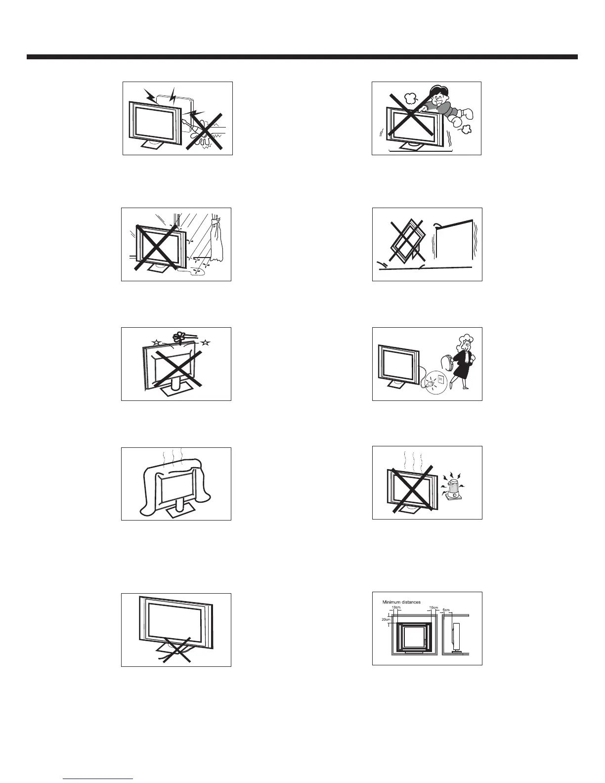 or openings. Never spill any kind of liquid on the television