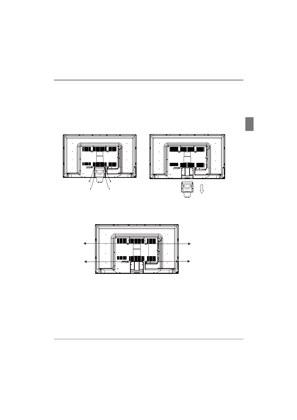 3. Utilice los cuatro tornillos suministrados para fijar el TV sobre el soporte de pared del TV (no