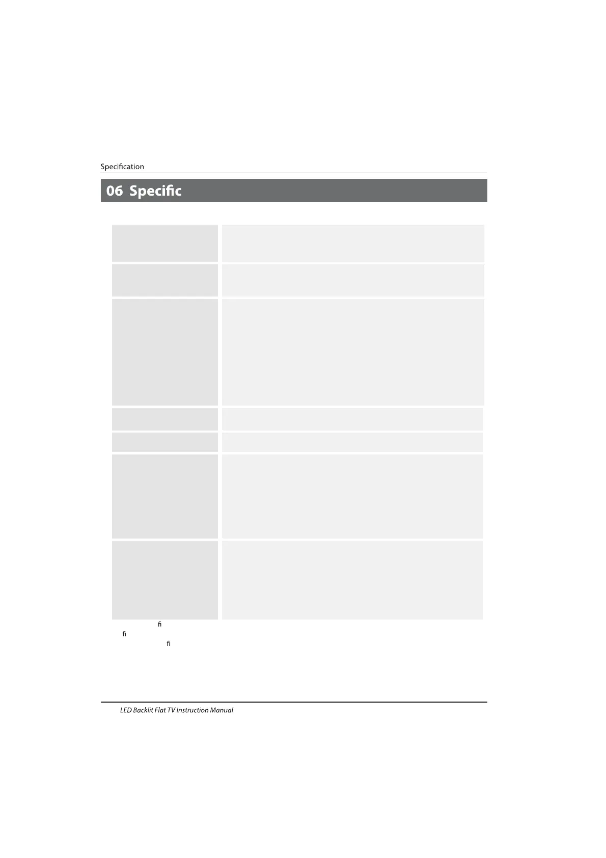 * The part speci cations of this TV set provided here