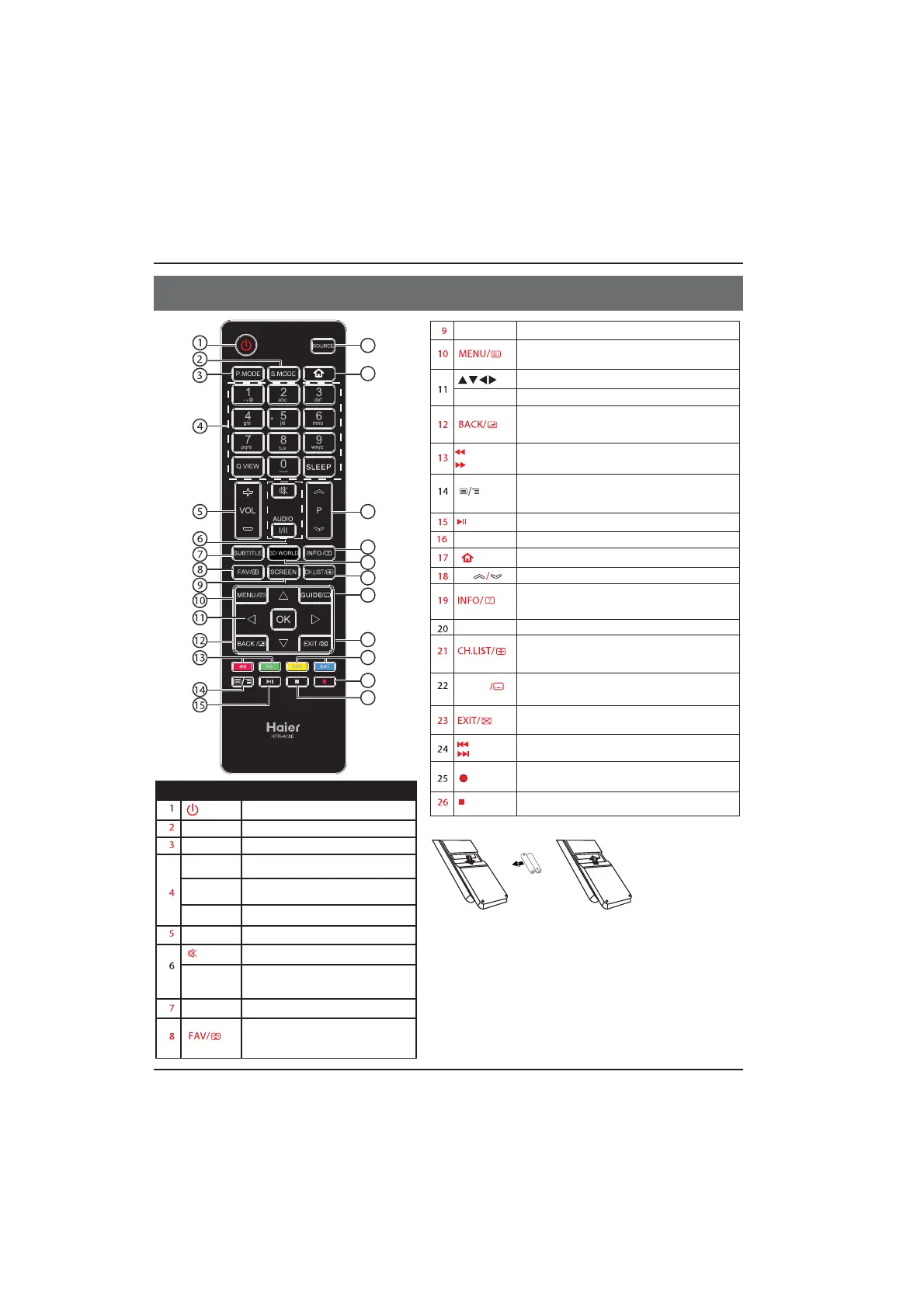 2) Retirez les piles lorsqu'elles sont usées ou si la télécommande ne va
