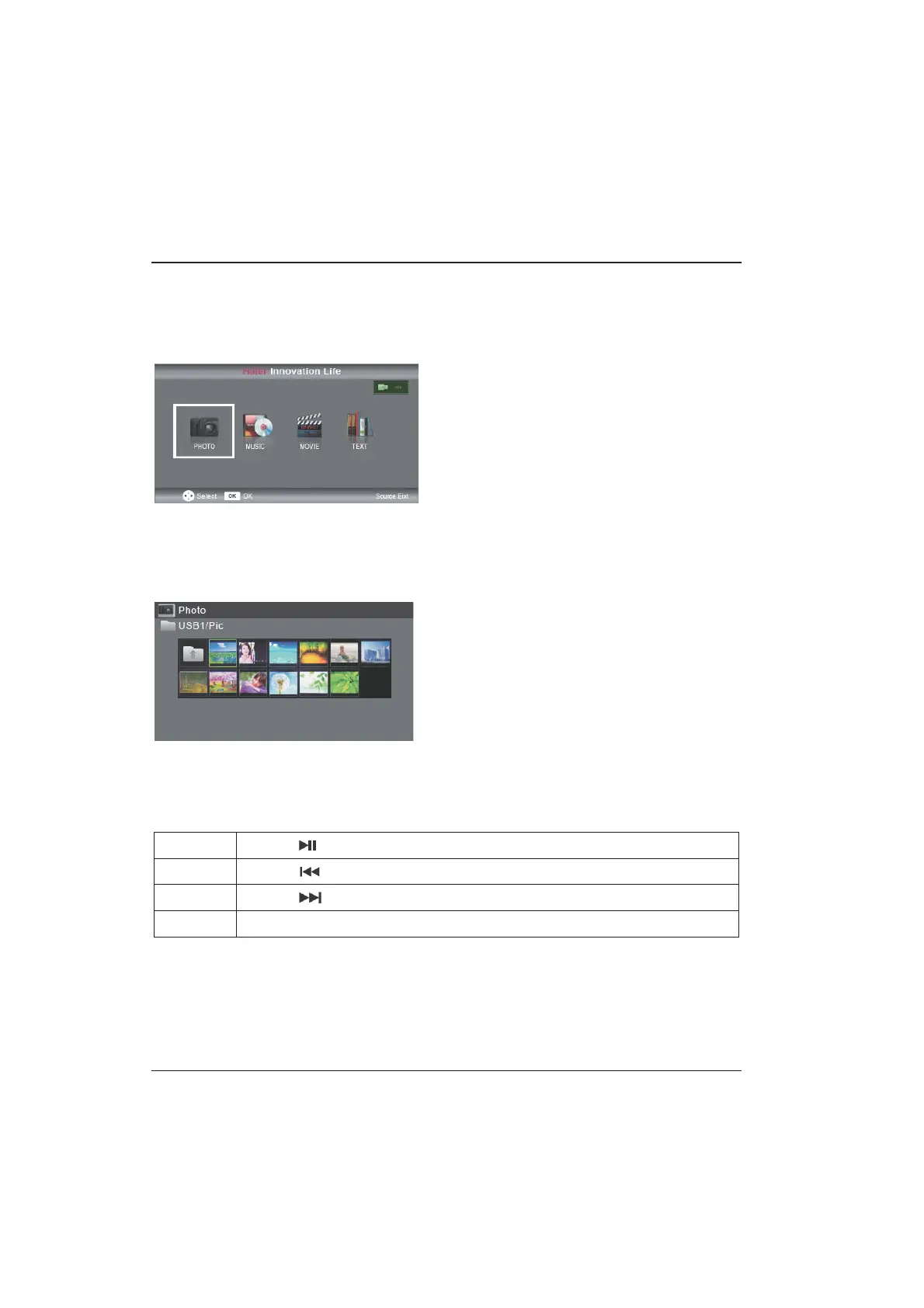 Appuyer sur la touche Source, et sélectonner USB dans la liste, appuyer sur le bouton OK pour entrer dans le Menu USB.