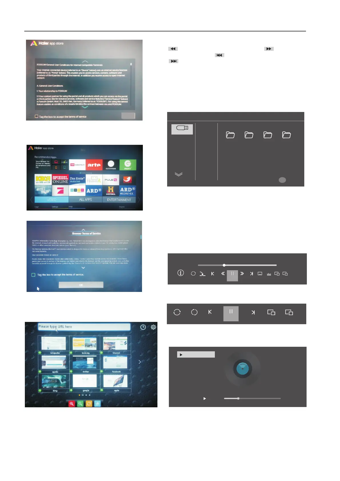 In the Haier Apps applications and the browser application , the