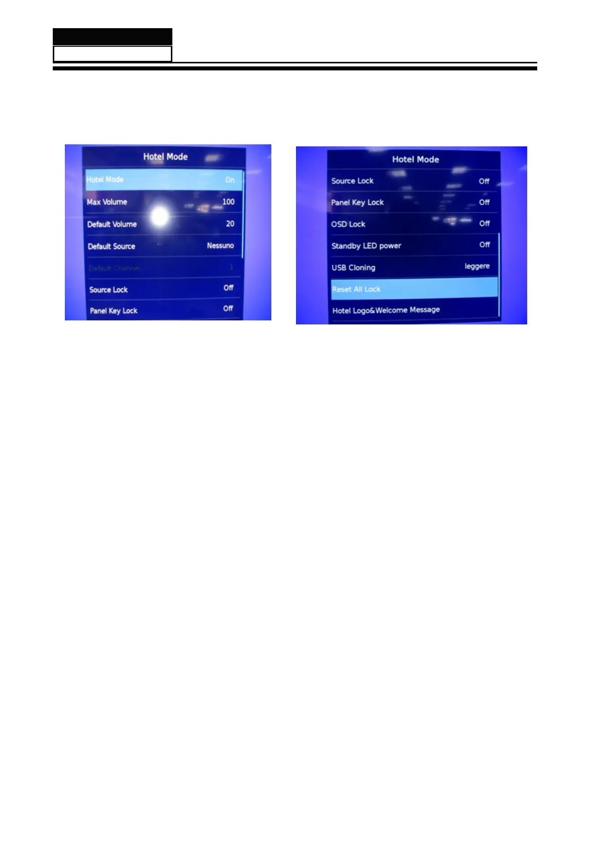 11.Reset All Lock: restore the default setting of hotel mode